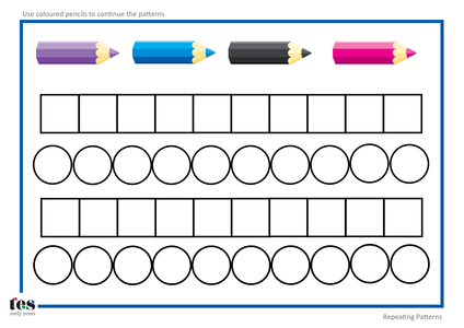 Patterns worksheets | Teaching Resources A work sheet based on completing a repeating pattern, spotting an error in a repeating pattern and creating own repeating patterns.